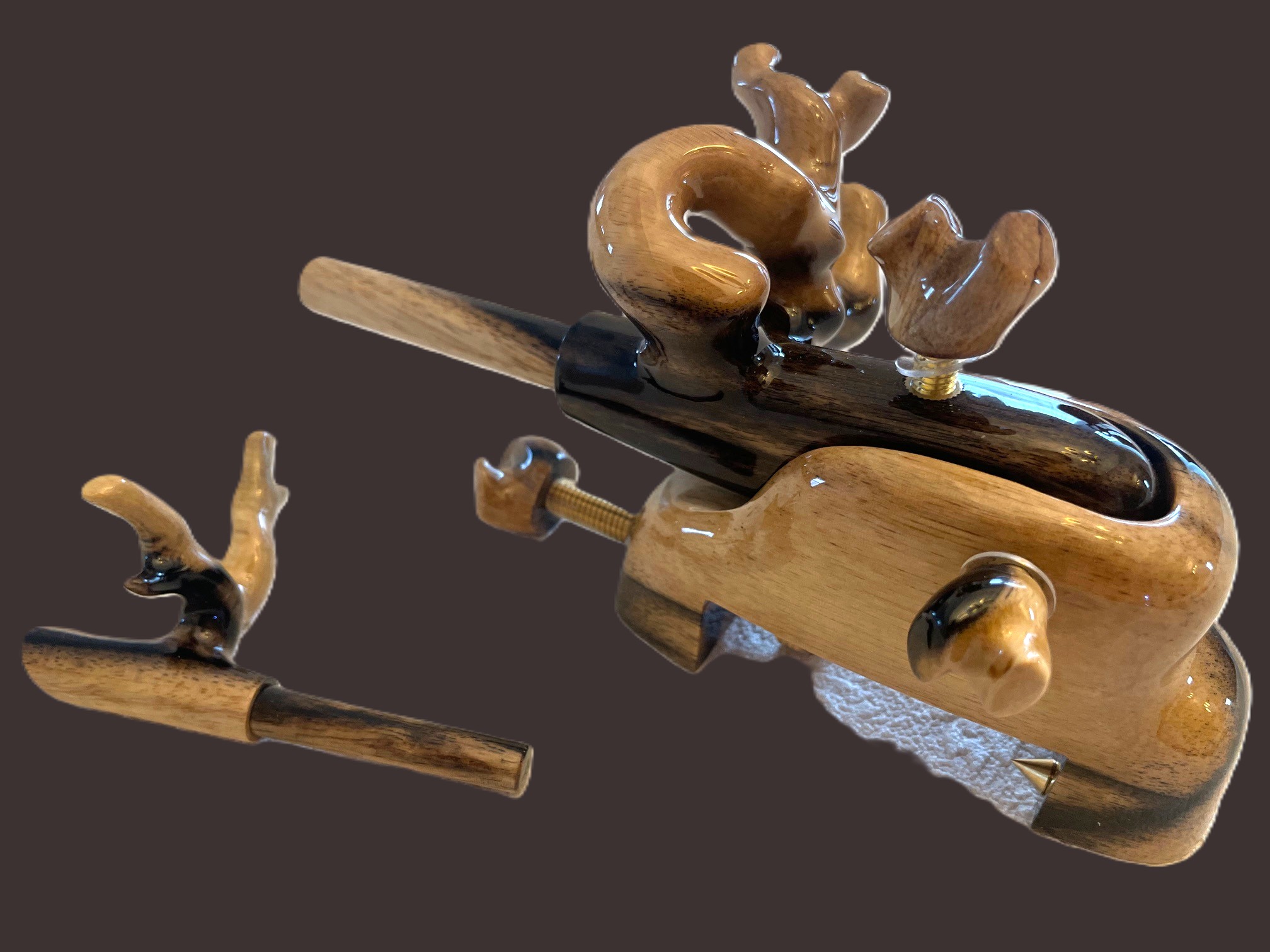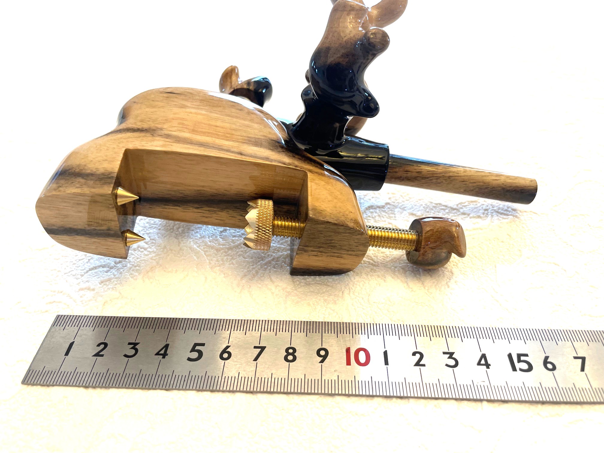 また黒柿と言う希少な素材を手に入れ、一つ一つ全てのデザインが違い趣のある万力セットが生まれました。