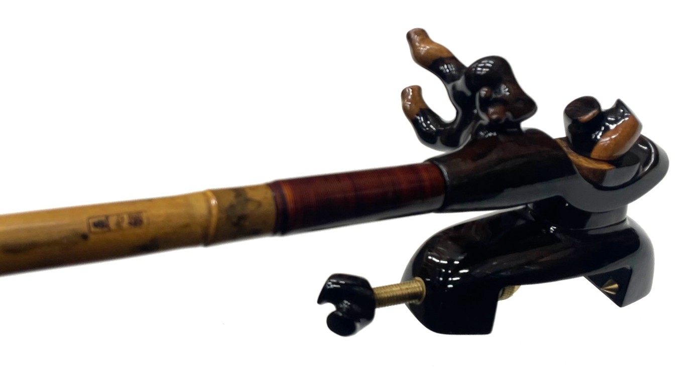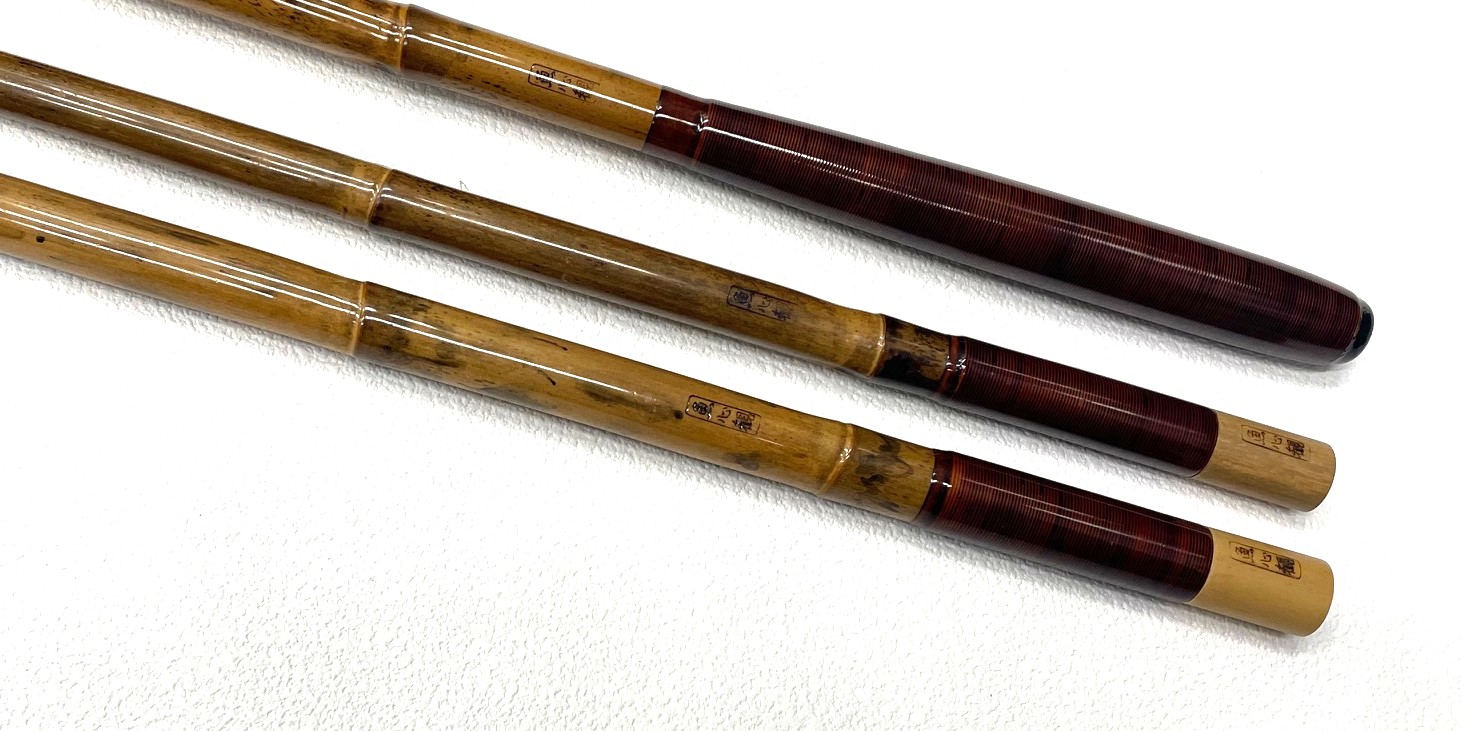 魚心観 中古・60周年記念節黒紋竹・竿掛・玉柄・付属品一式付き・上良・GS-638